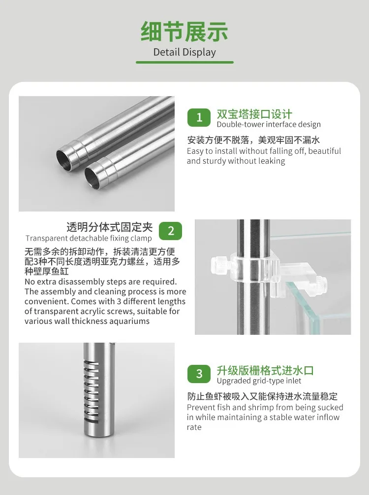 Made from high-quality stainless steel, the pipes are durable, corrosion-resistant, and built for long-term use. The sleek metallic finish also adds a modern and professional appearance to your aquarium setup, making it popular among aquascaping enthusiasts.